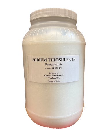 Sodium Thiosulfate Pentahydrate (Na₂S₂O₃·5H₂O) is a water-conditioning compound widely used in ponds and aquatic systems to neutralize chlorine and chloramine present in municipal or treated water supplies. These disinfectants can be harmful to fish, aquatic plants, and beneficial bacteria, and sodium thiosulfate pentahydrate safely converts them into non-toxic byproducts.